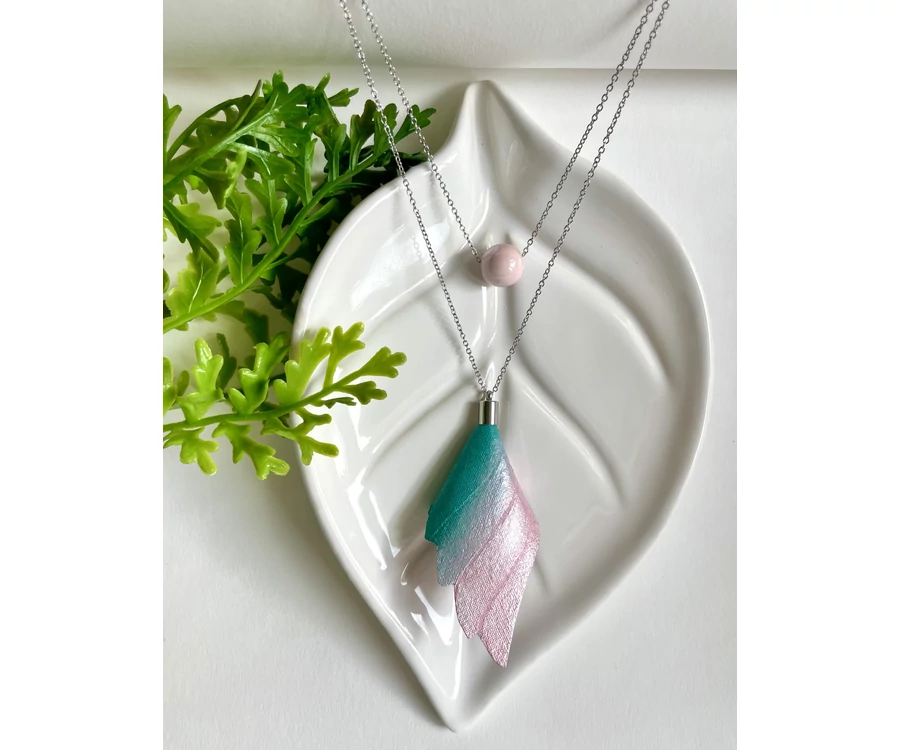 A képen látható fülbevaló a világos gyöngyházrózsaszínből a pinken át, egészen a lila csodás színvilágáig varázsol minket.